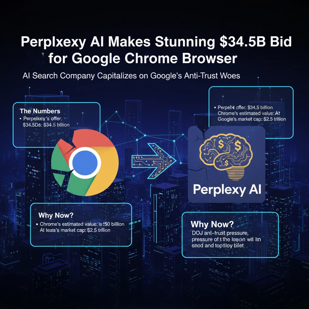- Perplexity’s offer: $34.5 billion (nearly double its own $18 billion valuation)